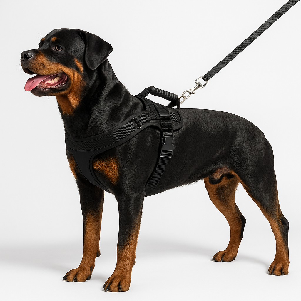 O Colete Califórnia Reforçado para Rottweiler foi projetado para garantir segurança absoluta e controle total para tutores de cães de grande porte e alta energia. Com design inteligente, materiais de primeira linha e acabamento premium, oferece conforto superior e resistência mesmo nas situações mais exigentes, tornando os passeios e treinos mais tranquilos, seguros e prazerosos para você e seu Rottweiler.