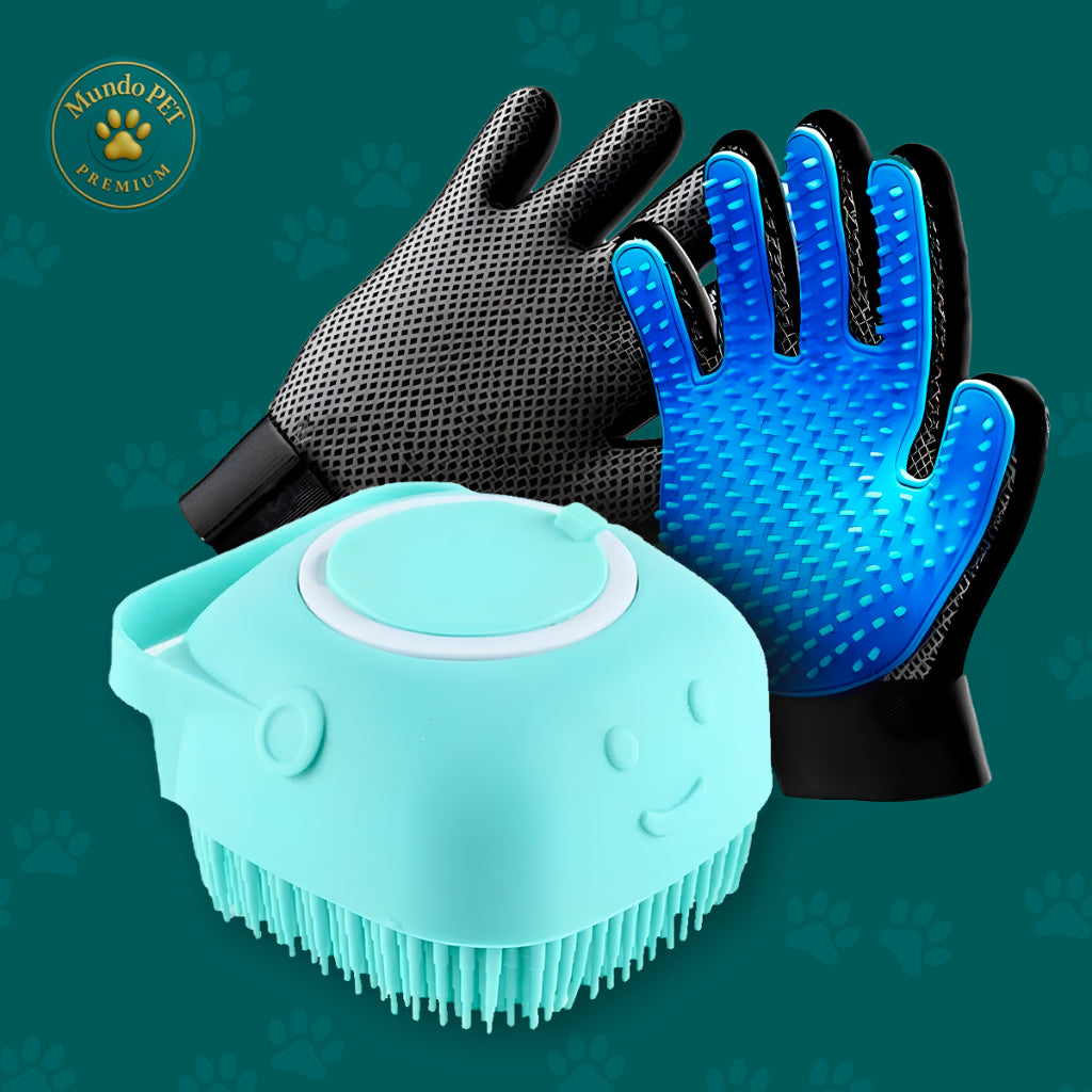 Luva Tira Pelos + Escova Massageadora com Dispenser
