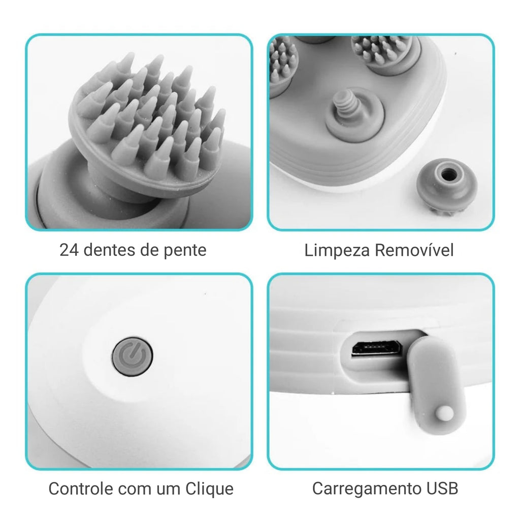 Estimulação Capilar e Circulação Sanguínea: Equipado com 76 pontos de amassamento 3D, o massageador estimula o crescimento dos pelos e mantém um fluxo sanguíneo saudável. Isso ajuda a aumentar a circulação sanguínea, impulsionar o crescimento dos pelos, liberar o estresse e aliviar dores musculares. Como resultado, melhora a amplitude de movimento, aumenta o suprimento de oxigênio e nutrientes para as células musculares, alivia espasmos musculares e ajuda a eliminar compostos tóxicos, como o ácido lático, que causam dor.