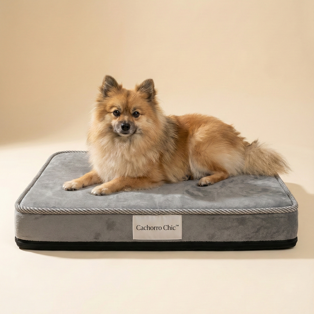 O Colchão Ortopédico do Spitz Alemão™ foi pensado para o corpo específico dessa raça: compacto, peludo, sensível e cheio de energia.