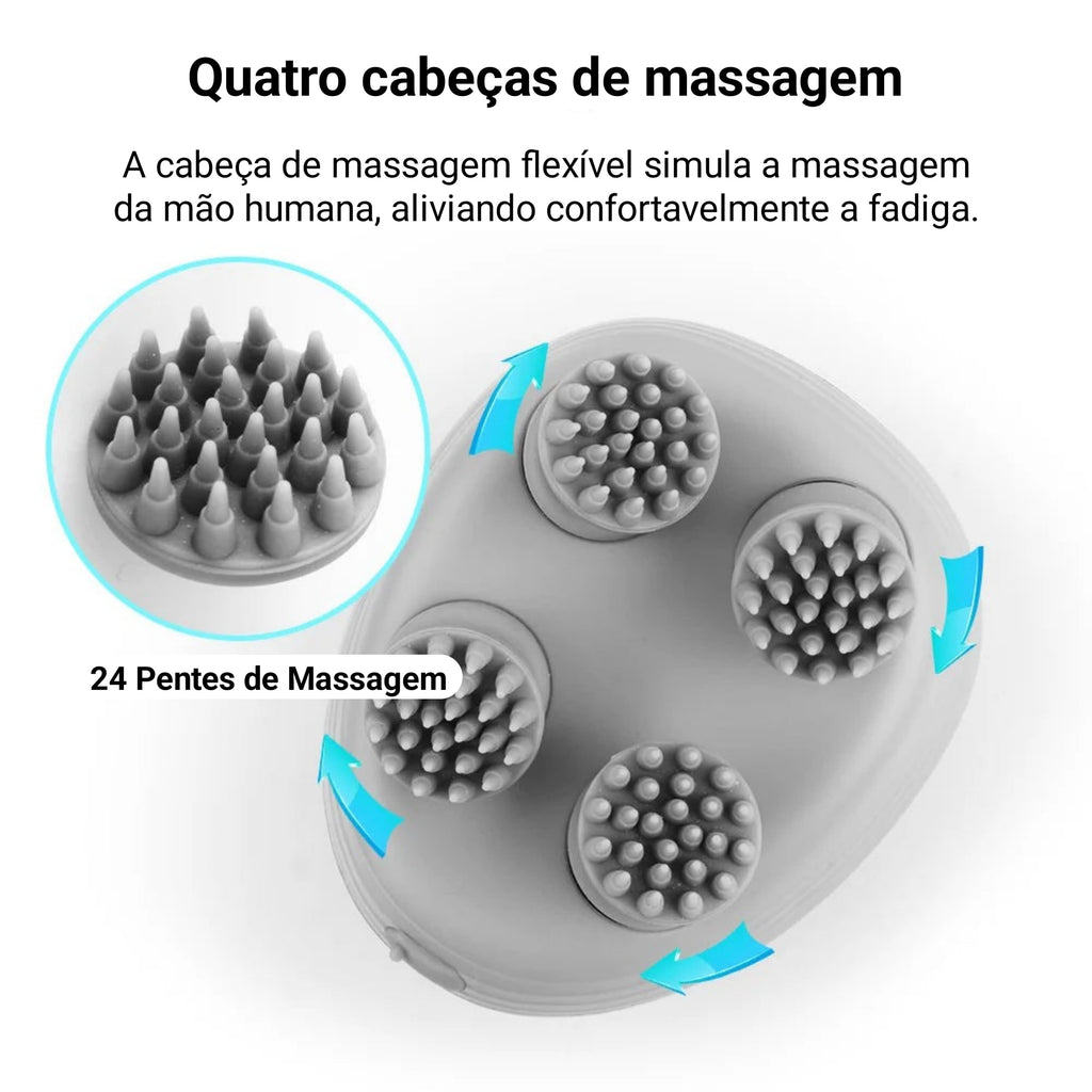 Estimulação Capilar e Circulação Sanguínea: Equipado com 76 pontos de amassamento 3D, o massageador estimula o crescimento dos pelos e mantém um fluxo sanguíneo saudável. Isso ajuda a aumentar a circulação sanguínea, impulsionar o crescimento dos pelos, liberar o estresse e aliviar dores musculares. Como resultado, melhora a amplitude de movimento, aumenta o suprimento de oxigênio e nutrientes para as células musculares, alivia espasmos musculares e ajuda a eliminar compostos tóxicos, como o ácido lático, que causam dor.